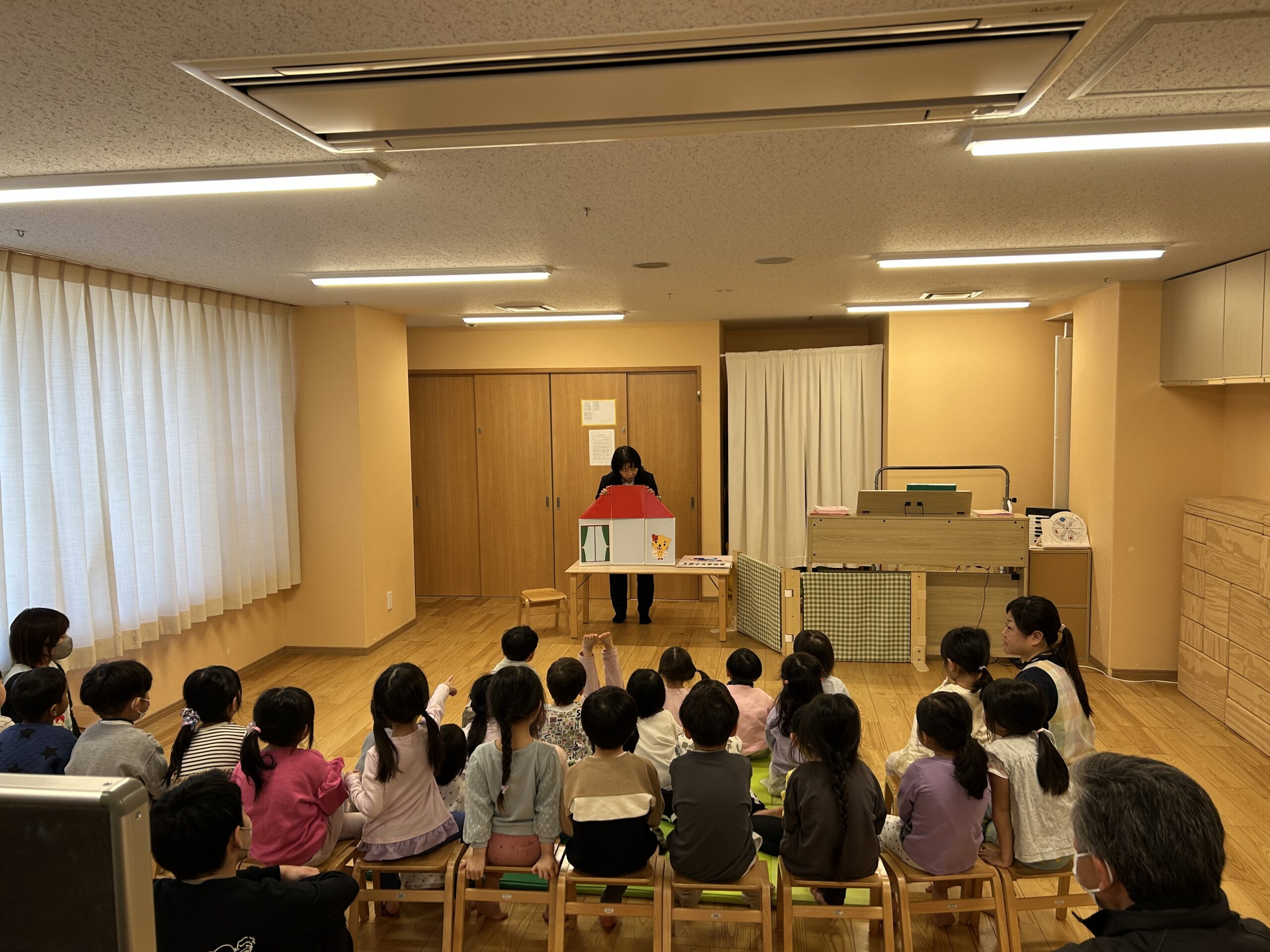 不審者訓練 (お知らせ) 2025年11月28日 行事 11月に不審者訓練を行いました。 今回も職員はさすまたを使っての訓練です。 訓練の最後には子どもたち向けに紙芝居や腹話術で安全についてのお話をしていただきました。 Tweet « 11月保育通信 | 一覧 | おだっこ展を開催しました! » 最新2件 【幼児組 りんごの食べ比べをしました】 2025年12月5日 園内研修 2025年12月3日 研修 2025年12月 月 火 水 木 金 土 日 « 11月 1234567 891011121314 15161718192021 22232425262728 293031